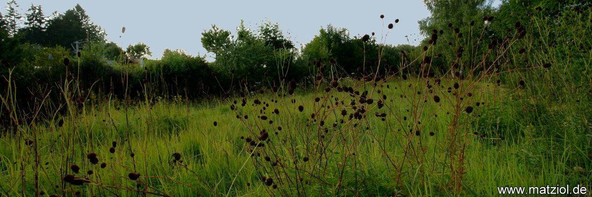 Von den früher im Dachauer Moos weit verbreiteten Streuwiesen sind in der Gemeinde Karlsfeld nur noch Relikte vorhanden. Eines davon hat sich erst vor wenigen Jahrzehnten an der Böschung eines Entwässerungsgrabens zwischen der Bahnlinie und der Würm angesiedelt. Die "Wehrstaudenwiese" zeichnet sich vor allem durch das Blaue Pfeifengras und die seltene Knollige Kratzdistel aus. Letztere steht auch auf der roten Liste der gefährdeten Farne und Blütenpflanzen in Bayern. Daneben wachsen zwei Arten, die ebenso beurteilt werden müssen, nämlich der wohlriechende Lauch und die Sumpf-Gladiole. Schließlich sind hier mindestens 17 Arten bekannt, die nach dem Arten- und Biotopschutzprogramm für den Landkreis Dachau als kreisbedeutsam gelten. Um diesen kostbaren Streuwiesenrest zu erhalten kümmert sich der Bund Naturschutz seit dem Jahr 1977 um die Pflege, indem regelmäßig Sträucher zurückgeschnitten werden und die Wiese gemäht wird.