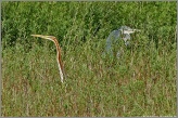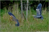 Der Purpurreiher ist eine absolute Seltenheit bei uns und dieses Exemplar war anscheinend auf der Durchreise und hat einen Zwischenstop im Krenmoosbiotop eingelegt – interessanterweise genau am 7. Todestag des bekannten Karlsfelder Naturschützers Josef Koller, als ob der diesen hier vorbeigeschickt hätte, um alle Naturfreunde zu erfreuen. Der ebenfalls anwesende Graureiher war weniger entzückt als wir und versuchte den Eindringling sofort aus seinem Revier zu vertreiben.