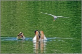 Am Karlsfelder See brüten seit Ende Juni die Haubentaucher (nach ein paar Jahren Pause) wieder in einem schwimmenden Nest mitten im See. Für mich sehr erstaunlich, dass die relativ scheuen Tiere das an einem so stark frequentierten Badesee tun, an dem über weite Bereiche das Unterholz entfernt wurde um Badegästen einen besseren Zugang zum Wasser zu geben. Aber es freut mich natürlich als Naturfotograf, dass man auf diese Tiere so eine freie Sicht hat, und gemütlich auf einer Bank sitzend Bilder machen kann. Leider werden die Tiere immer wieder durch Seebesucher beim Brüten gestört und verlassen das Nest, wenn diese sich dem Nest zu sehr nähern. Hoffen wir einmal, dass wir Ende Juli bis Anfang August auch den Nachwuchs bewundern können und alle Freizeitsportler den nötigen Abstand von dem Nest halten.