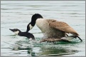 Aktuell sind die Graugänse mit dem Brüten beschäftigt und haben teilweise schon Nachwuchs. Die Kanadagänse sind meist etwas später dran und so konnte ich ein Paar beobachten, dass mit „Nachwuchsplanung“ beschäftigt war und sich dabei auch nicht von einem lästigen Fotografen stören ließ. Zu Beginn des Paarungsaktes umschwamm sich das Pärchen während beide immer wieder mit dem Kopf untertauchten. Das Vorspiel dauerte etwa 10 Minuten und deutlich länger als die eigentliche Paarung, die in etwa 10-15 Sekunden vorbei war. Jetzt heißt es noch gut 1 Monat warten (die Brutzeit bei Kanadagänsen beträgt etwa 28 Tage) und dann ist das Pärchen vielleicht schon mit dem Nachwuchs am Waldschwaigsee unterwegs.