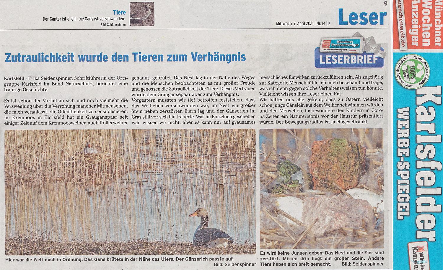 Hier sind einige meiner Bilder online auf der Homepage des Münchner Merkurs zu sehen, sowie ein Bericht zur Fotoaustellung "Natur erleben in Karlsfeld"