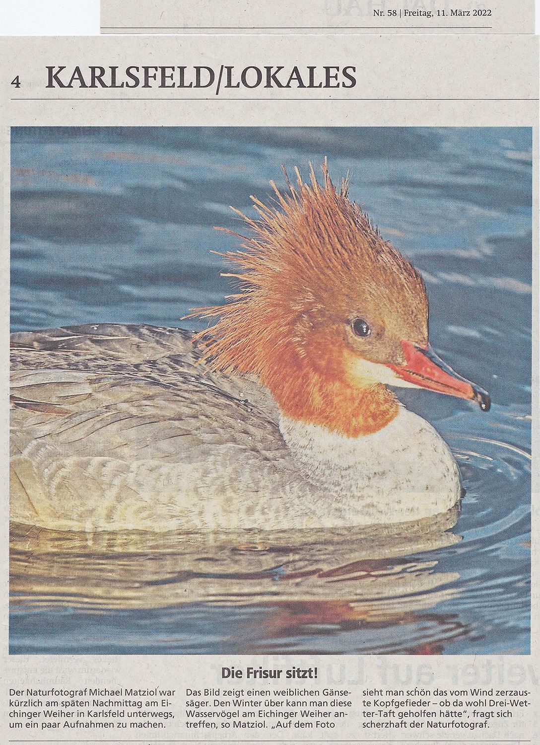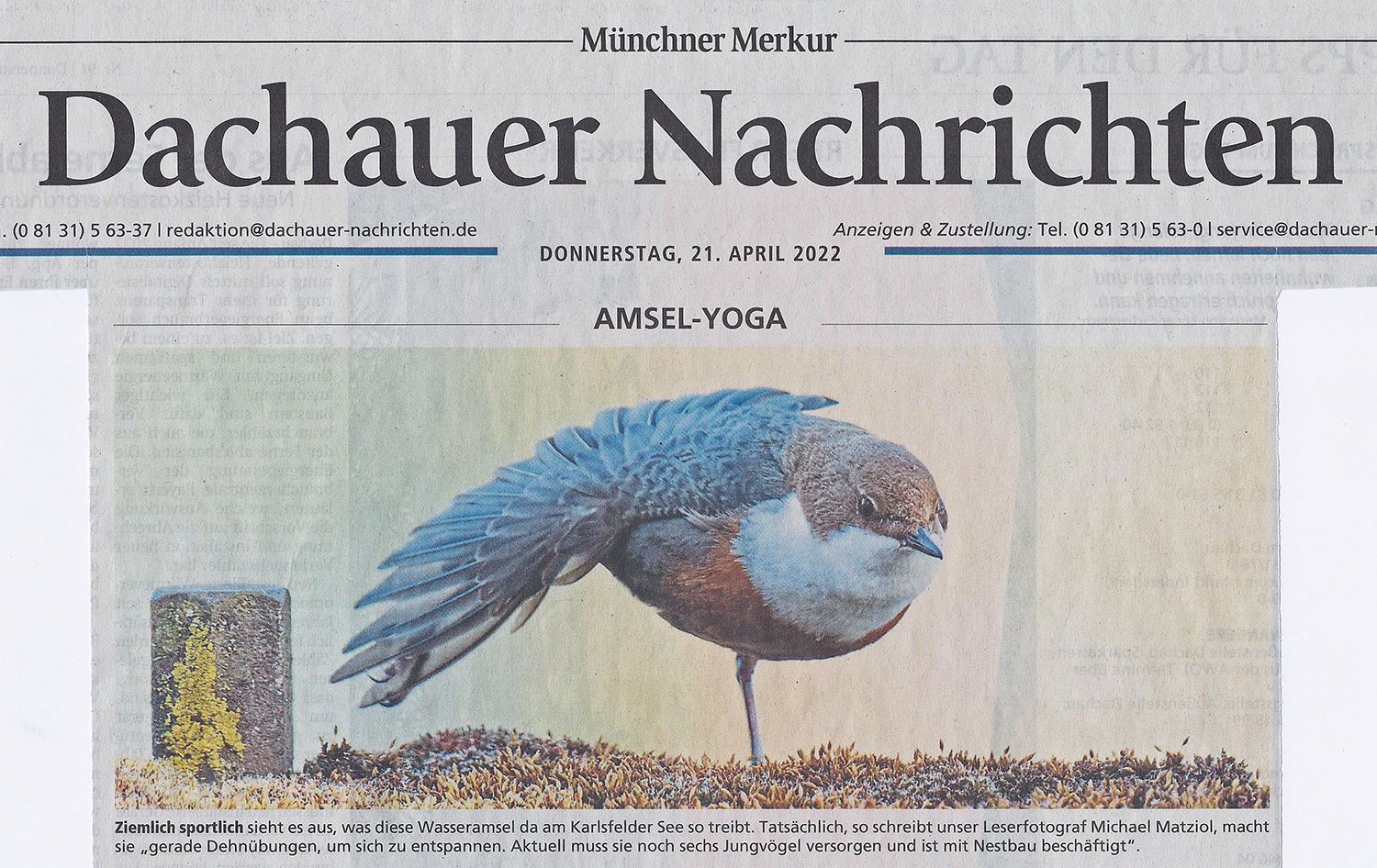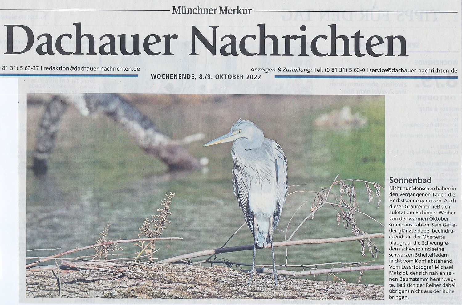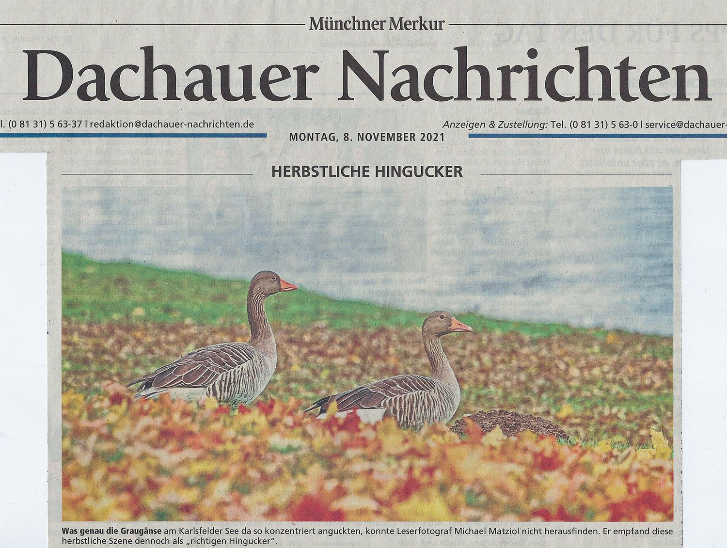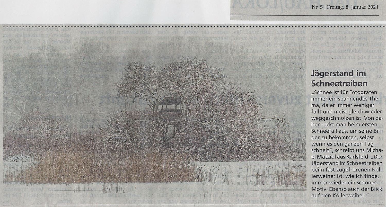 Hier ein Bericht über Hobbyfotografen, die die Lokalredaktion der Dachauer Nachrichten mit Bildern versorgen. https://www.merkur.de/lokales/dachau/landkreis-dachau-sti1429996/landkreis-dachau-aktiv-hobbyfotografen-michael-matziol-karlsfeld-90034431.html